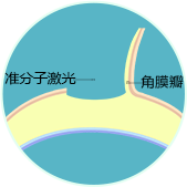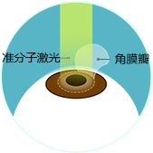 掀开角膜瓣,用准分子激光,切削部分基质层,形成一片“透镜”,达到矫正视力的效果