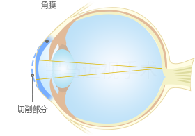 用激光切削去除一片薄薄的“透镜”,改变角膜曲率,使光线汇聚点落到视网膜上,成像就清晰了